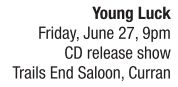 BAND SPOTLIGHT | Young Luck How lucky it is to be young and in a band! Young Luck began in mid-November of 2012 when Fedor and the Power Trio morphed into a kicking band blowing down the road like a rock ’n’ roll freight train. When Zack Fedor (lead vocals, guitar, harmonica), Tyler Landess (lead guitar, vocals), Ryan Hendrickson (bass, vocals) and Joel Day (drums, vocals) came together as a foursome the power increased exponentially. The more they played together, the more they joined together in songwriting, performance and spirit. They started out just looking for a good time, and you’ll sure sense that, but when realizing their potential, the goals got serious. This Saturday announces the release of Springfield City Limits recorded at FreQuincy Records, written and performed by the boys in the band. Check out the Young Luck Facebook page for a treat of a CD teaser. You can hear modern rock edges joining ’60s sensibilities, all tied up neatly with a strong sense of what rock ’n’ roll is and what it can do.