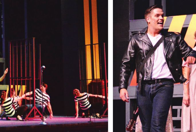 Thirteen jailbirds rotate moving set pieces, smiling as they flip and spin each other around the main character in the opening number, a raucous rendition of “Jailhouse Rock.” Yes, being in the classic rock ’n roll musical is as fun as it looks. It’s taken the young cast eight weeks to get to opening night. During the journey, they’ve navigated the obstacles that come with bringing a complex show to the large Muni stage – and although a brief rainfall forced the dancers to simplify some steps on opening night, the cast has come out unscathed.