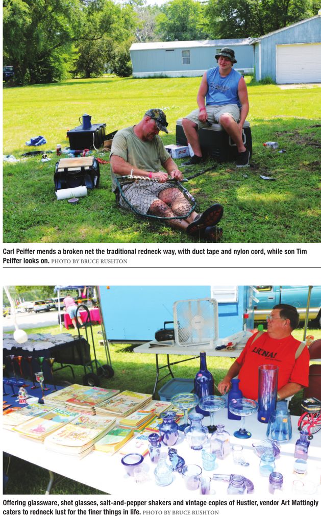 With crowds no longer approaching 75,000, the Redneck Fishing Tournament is not what it once was, and the fish are smaller, too. But rednecks are a determined lot, and the event has survived, even thrived, with dip nets replacing firearms and eager journalists from such organizations as Time and National Geographic sucked into covering the frenzy. I arrive one day early, provisioned with 36 cans of Stag beer, a tent, blue tarp, camera, notebook and not much else. I bring no food, or toilet paper, for that matter. I will be living off the redneck land for nearly three days. And I have faith.