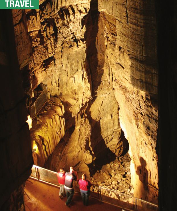 The Historic Tour also includes the Bottomless Pit, where you can look down 102 feet; and Fat Man’s Misery, where tourists squeeze through tight passages with ducked heads. Many passageways are broad and high, but some may make claustrophobics cringe. The floor often is uneven.