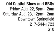 Kicking off a fast approaching fall festival season, the ever-popular Old Capitol Blues and BBQS has great blues music paired with a food favorite, barbecue. Put on each year by Downtown Springfield, Inc. the festival has another amazing lineup. Headliners this year are Victor Wainwright and The Wild Roots on Friday and The Lee Boys (pictured) and Sacred Steel on Saturday. Each show starts at 10 p.m. On Saturday starting at noon at the Illinois Central Blues Club Challenge, cheer on your favorite local blues act competing for a chance to go to the Blues Foundation International Blues Challenge in Memphis. Also Saturday from 2-6 p.m., families can visit a free kids’ area with karaoke, puppet show, magic, juggling, face painting and more. Food and beverage tickets are $1 each and can be purchased at Fifth and Washington streets. Festival admission includes four food and beverage tickets. Children 12 and under are free. See also