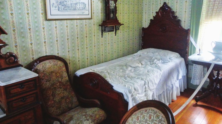 One of the first exhibits we spied in the depot covered Mary Todd Lincoln’s tenure at Bellevue Place after a Chicago jury pronounced her insane in 1875. The Depot has Mary’s bed and dresser from the room where she stayed in Bellevue after her son, Robert Todd Lincoln, accompanied her there on May 20, 1875.
