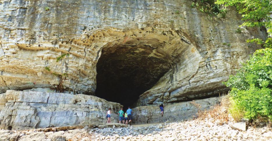 For more geology and scenic views, stop at Cave-in-Rock State Park, which hugs the Ohio River. You can explore the one-time hangout of outlaw river pirates and eat at the state park restaurant or spend the night in cabins or camping.