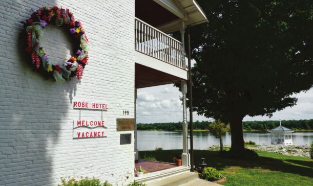 In Elizabethtown, check out the view of the Ohio from the porch of the Rose Hotel, built in 1812 to serve river travelers. The hotel is now owned by the state and underwent renovation from 1998-2000, with five rooms available to rent. Another historic bed and breakfast inn, the River Rose Inn, sits across the street.