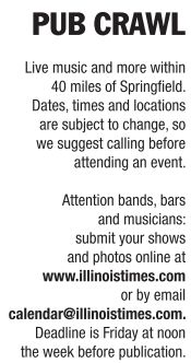 Find more details and gigs in our online calendar at www.illinoistimes.com. Are you a musican or band? Join our Band Directory.