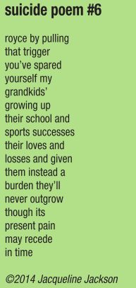 The number for the National Suicide Prevention Lifeline is 1-800-273-8255. Put it in your phone, share it with your friends, post it on your locker, and give it to everyone. It’s time that we quit whispering, quit ignoring it and reach out to save someone. Misty Bell Mason City
