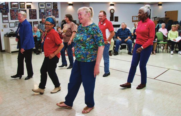 When Dorothy Irvine and her daughter left the Senior Center, Rita took over the tap class. She calls tap “good exercise mentally as well as physically.” Her class numbers about 10, with seven dancing in the show under the name The Shufflin’ Seniors. “It’s a fantastic group,” she says, “very supportive of each other.”