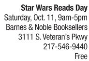 Star Wars Reads Day will return to Barnes & Noble on Saturday, Oct. 11. This family friendly event will offer Star Wars readings, light saber demonstrations, a treasure hunt, giveaways, crafts and treats all day. Noon will mark the arrival of the 501 Midwest Garrison and your opportunity to meet Boba Fett, a biker scout, a Tuskan Raider and others. Test your knowledge of the Force in the trivia contest, which begins promptly at 1 p.m. Don’t forget to dress as your favorite intergalactic character, as a costume contest will immediately follow at 2 p.m. May the Force be with you!