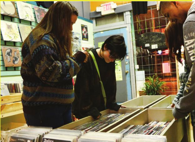 On a typical Wednesday evening in Southtown, one might enter through the front door of Dumb Records (1107 S. Grand Ave.) and pass young people (leather, tattoos and piercings optional, but prevalent) talking and casually perusing the LP, 45, cassette, CD and t-shirt stock or possibly engaging in a game of foosball. The music choices on the store speakers here can be eclectic – recent visits have featured selections from Slayer and the Mamas & the Papas. The atmosphere is casual but strangely energized.