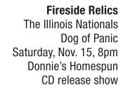 BAND SPOTLIGHT | Fireside Relics Starting out as mainly a cover band in 2009 after members met at an open mic, by 2013 Fireside Relics had undergone a few personnel changes while setting a new direction toward original music. They’re still known to pull out the covers from time to time, but the seven-piece ensemble of Kristi Lecocq (vocals, acoustic guitar), Nick Park (vocals, rhythm guitar), Dave Helm (vocals, various instruments), Jon Harvel (vocals, bass guitar), Aaron Davis (lead guitar), Edward J. Williamson (drums) and Carl Becker (keyboards, trumpet) recently hit the studio to record their first CD. This Saturday, they celebrate their hard work and commitment at a release party offering CDs for sale to the public, along with a limited number of special Fireside Relics official T-shirts. Known as a combo that really plays together and off each other, they’ve also earned a reputation as a genre-bouncing band able to comfortably mix elements of rock, blues, jazz, folk, alternative and even “surf rock” with interesting lyrical directions to make truly original sounding originals. See also