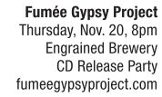 BAND SPOTLIGHT | Fumée Gypsy Project What sounds come to mind when gypsy-jazz music gets mentioned? If it’s soaring vocals, speedy guitars and swinging bass you are in the realm of the Chicago-based Fumée Gypsy Project. This last year, Christy Bennett (vocals, accordion), Casey Nielsen and Nate Baker (guitars) and Christian Dillingham (bass) completed a crowd-sourced, fan-based funding project on Indiegogo to support Reverie, their new record. Now they’re out performing the recording live on a CD release tour with dates in St. Louis and Chicago, plus one night only in Christy’s original hometown of Springfield. She did school time in Pleasant Plains and went to Sacred Heart-Griffin for high school, doing some Muni productions and other local singing organizations along the way. Her love for the gypsy-jazz style led her to fellow musicians in Chicago also infatuated with the intriguing music. She’s dedicated a good part of her life to making this band happen, much to her joy and our benefit. Sam Crain and Rob Killam join the FGP at the Engrained Brewery show. See also