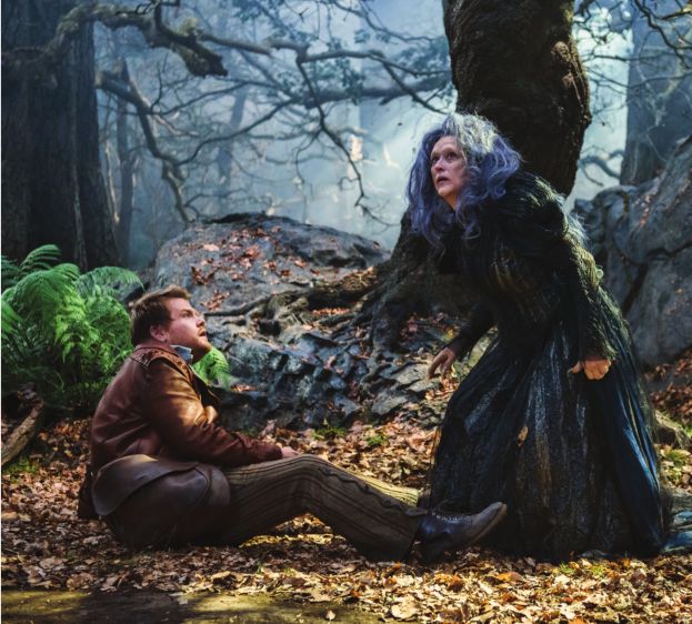 It’s obvious who has these items. The script conspires to place Red Riding Hood (Lilla Crawford), Jack (Daniel Huttlestone), Cinderella (Anna Kendrick), Rapunzel (Mackenzie Mauzy) and a couple of princes (Chris Pine and Billy Magnussen) in the woods to collide with the desperate man and wife. Sondheim’s brilliant songs propel the story, particularly “Into the Woods,” in which each character tells why they’re venturing into the forest. This song and all the others are orchestrated in a grand manner befitting the massive set, as one comes rapidly on the heels of another, giving the film a nearly reckless sense of momentum. The show is incredibly dense as its first hour includes no less than 15 songs, which bring these tales to their traditional endings.