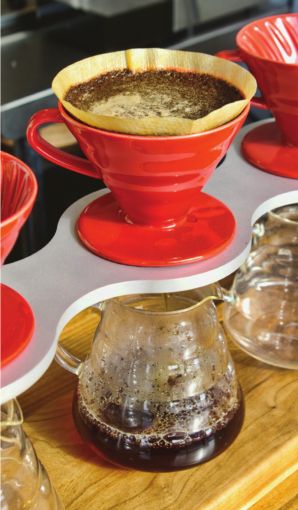It should be noted what Custom Cup is NOT. It’s not about “coffee drinks,” beverages in which coffee is merely a substrate for various flavorings and almost always lots of sugar. It’s not even about traditional espressos or cappuccinos, although the Boesdorfers say they may eventually purchase an espresso maker. But right now, their roastery and coffee bar offer only freshly roasted beans and drip (think Bunn-O-Matic) or pour-over (as in Melita Cones) coffees. Even those similar brewing methods produce different flavor profiles from the same coffee beans, says Brent.