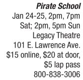 Pirate School is an interactive variety show for children ages 4 and up. Created by New York City-based comedian and actor, David Engel, the show utilizes everyone’s favorite “briny buccaneers of yore” as a vehicle for teaching children good manners and societal courage. Pirate School features a cartoon-like soundtrack, friendly competition between audience members, lessons on how to sing, talk and laugh like a pirate, puppetry, props, slapstick swordplay, a talking skull and the world’s only wearable pirate ship. This fun, family event will be at the Legacy Theatre for two days only. Tickets are available in advance online at http://atthelegacy.com for $15 per person or at the door for $20. A lap pass for children ages 3 and under will be available for purchase at the door for $5.