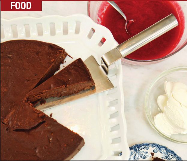 decadent cake that’s like an ultra-fudgy brownie, smothered with more