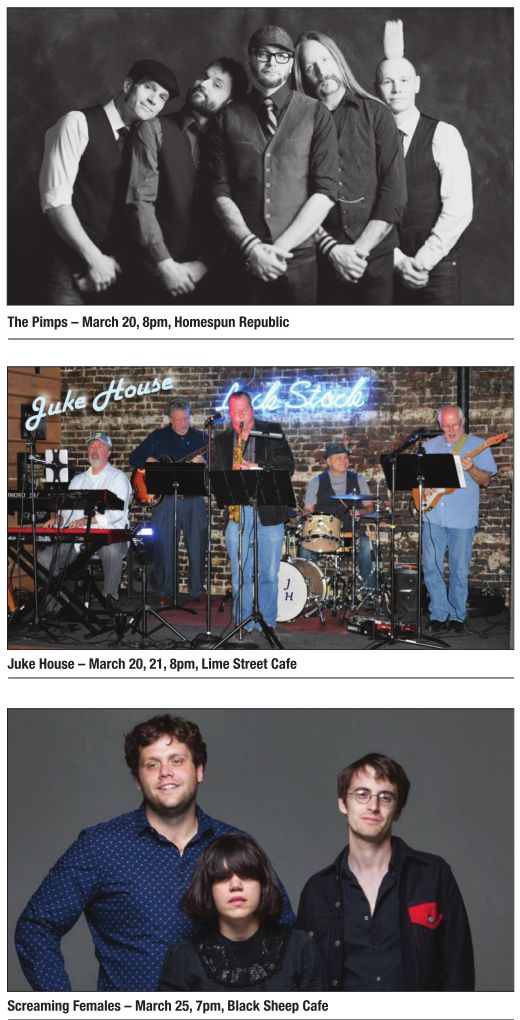 Ran$om Kuhl Tyme Korner, Jacksonville, 8:30-12:30pm. Juke House Lime Street Cafe, 8-11:30pm.