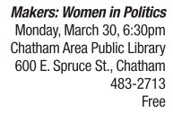 FILM | Leading ladies On Monday, March 30, at 6:30 p.m., join the Springfield branch of the American Association of University Women to view a documentary on groundbreaking women in politics, medicine and other fields that were previously closed to women. The 2013 documentary highlights the struggle for women’s equality during the past five decades. Hear the stories of Hillary Rodham Clinton, Ellen DeGeneres, Oprah Winfrey and other women who boldly chose to go where no woman had gone before. The film is part of the “Makers” series on Makers.com, the “largest video collection of women’s stories.” The showing is free and open to the public. Refreshments will be provided. For more information about Makers: Women in Politics and other “Makers” films, visit http://makers.com. See also