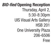 On Thursday, April 2, from 5:30-8:30 p.m., stop by the University of Illinois Springfield Visual Arts Gallery for the opening reception for BIO-fi ed, a group mixed-media art exhibition that explores various social, cultural and economic perspectives on genetic engineering. The exhibit, featuring mainly local artists, includes work by Laura Anderson, Denise Blakeman, Adam Dupuis, Amanda Greive, Shane Harris, Mike Miller, Leslie Stalter, Kevin Veara and Thom Whalen. BIO-fi ed will be on display March 30 through April 16 during normal gallery hours, which are Monday through Thursday, 11 a.m. to 6 p.m. For more information about BIO-fi ed or the UIS Visual Arts Gallery, visit http://uis.edu/visualarts/gallery.