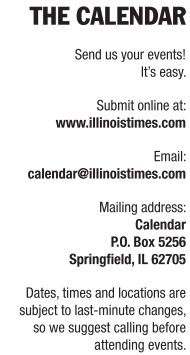 Club LaCage Apr 18, 7pm. Drag show featuring Springfi eld’s greatest drag performers. Hosted by Springfi eld Phoenix Center. $10, $25 VIP. Hoogland Center for the Arts, 420 S. Sixth St., 217-523-2787.