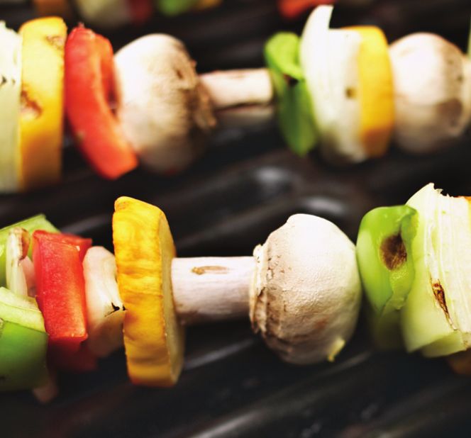 Onions – Cut onions into slices at least ½-inch thick. Reserve the curved ends for other uses. Pierce onion slices with skewers or toothpicks to keep from separating. Small whole onions such as cippolini or pearl onions should be parboiled before using for kebobs. Brush the cut sides of the slices with oil, salt and pepper and grill on both sides. You can grill them until completely softened or until crisp/tender, depending on the onion’s flavor and final use.