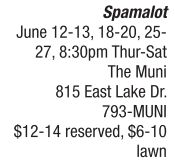 This June, The Muni, Springfield’s long-running community theater under the stars, presents a fun, farcical take on the legend of King Arthur and the Knights of the Round Table. Spamalot is the Tony Award-winning musical adaptation of the 1975 classic British comedy film Monty Python & the Holy Grail. The show features beautiful dancing girls, a flatulent Frenchman, killer rabbits, cows, a plague and lots of laughs. Spamalot is directed by Muni veteran and immediate past president Mac Warren. Reserved seating tickets are available for $12-14. Attendees are also welcome to bring their own lawn chairs or blankets and purchase lawn seating for $6-10. Refreshments are available for purchase at the concession stand, and guests are welcome to bring their own coolers and picnic dinners. For more information about Spamalot and The Muni, visit http://themuni.org.