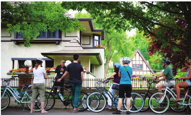 Offered on Fridays, Saturdays and Sundays through September, the Pedal Oak Park tour starts at 9:30 a.m. and takes about two hours. The ride begins in downtown Oak Park at Greenline Wheels at 105 S. Marion St. The tour costs $30 for members of the Frank Lloyd Wright Trust and $35 for nonmembers. The price includes the use of one of Greenline’s bikes but you’re welcome to bring your own. The tour runs rain or shine and is limited to 10 people. Reservations for this and other tours are highly recommended.