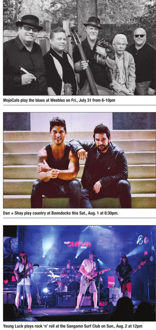 After Sunset, Screaming Vatos, Brooke Thomas and the and Blue Suns, Deep Hollow, Shunpikers Long Bridge Golf Course Clubhouse, 2-7pm. Young Luck and 2nd Chance Band Sangamo Surf Club, 12-6pm. Sunday Afternoon Open Mic The Loading Zone, Taylorville, 3-7pm. AAsome All Ages Open Mic Walnut Street Winery, Rochester, 2-5pm. GH None Karaoke Weebles, 8pm-12am.