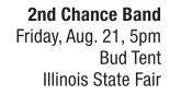 When you get a second chance you best make the most of it, and longtime local musicians Doug Bernet (drums), Marc Camp (vocals), Ralph Carbonell (guitar, vocals), Tom Jackson (bass, vocals) and Jeff Rocco (guitar, keyboard, vocals) are doing just that. With plenty shows around town and a sweet spot on Friday at the Bud Tent as one of only four bands doing Budweiser True Music Series gift and prize giveaways during fair gigs, these guys are on the make and on the move. Part of the amazing chemistry displayed by this fabulous five-piece comes from years of friendship dating all the way back to high school for Ralph, Tom, Jeff and Mark, with Doug now in the mix of good friends and good times. Taking no chances with the set list, these fellers list “rock, rocking country and party anthems” as the music they play, all favorites among the central Illinois set of bar going, fair attending, regular listeners. Check out their Facebook page for more info and up-to-date schedules and shenanigans.