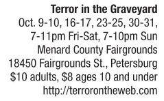 The Terror on the Square scare squad takes haunting to a whole new level in this year’s Terror in the Graveyard event. The veteran crew has manned the popular Terror on the Square haunted house for the past 22 years but switched locations in 2014 from a 1930s funeral home located on the square in downtown Petersburg to a spooky outdoor trail and graveyard at the Menard County Fairgrounds. Stroll down a 600-foot trail and through an abandoned graveyard to experience horrifying scares and see elaborated graveyard-related sets, ghost illusions, realistic special effects, creepy details and more. Concessions and souvenir items will be available for purchase on-site. Appropriate footwear and attire are strongly suggested for this outdoor event. For more information about Terror in the Graveyard, find them on Facebook or visit http://terrorontheweb.com.