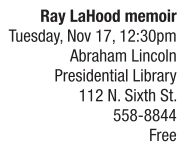 LECTURES & MEETINGS | The case for bipartisanship Throughout his career in Washington, Raymond LaHood has purported that partisan pettiness is hindering our nation’s ability to successfully face its challenges, which range from a crumbling infrastructure to terrorism to economic growth. A Washington veteran, LaHood worked as chief of staff for the House minority leader, served as a representative in Congress, and was named transportation secretary by President Barack Obama. LaHood recently released his memoir entitled Seeking Bipartisanship: My Life in Politics, and on Tuesday LaHood will be interviewed regarding his new book and the issues it raises by Mike Lawrence, the retired director of the Paul Simon Public Policy institute. LaHood will also answer audience questions, sign books and chat with attendees. The book, described as a “thoroughly entertaining memoir” by historian Doris Kearns Goodwin, will be available for purchase during the event. For more information about this and other ALPLM 10 th Anniversary events, visit http://TenYearsLincoln.com. See also