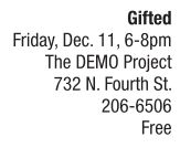 Gifted is a one-night-only contemporary art exhibition featuring artworks by the six talented leaders of The DEMO Project (Brad Balster, Brytton Bjorngaard, Shane Harris, Judah Johnson, Allison Lacher and Jeff Robinson). Each artist has created 20 works specifically for this show, with the intent of “gifting” each work to a member of the audience. The 120 pieces of art will be given away in a raffle-like manner with tickets being distributed to audience members as they arrive. Tickets will be drawn over the course of the night, and each winner will select a work to take home from the pieces remaining on the walls. For more information about Gifted and The DEMO Project, visit http://demoprojectspace.com.