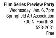 FILM | Independent, international films Indulge your excitement for the 25 th Annual Molly Schlich Independent and International Film Series by attending a popcorn and fun-filled preview party at the Springfield Art Association on Wednesday, Jan. 6, at 7 p.m. The party offers attendees their first opportunity to purchase 2016 film series passes ($45 a piece) and view trailers and Oscar-nominated short films. The Molly Schlich Independent and International Film Series showcases some of the best independent and international films from the previous year that did not show in Springfield. This year’s featured films are Human Capital, Phoenix, Meet the Patels, Labryinth of Lies, Second Mother, The Wonders, Taxi and Salt of the Earth. Films will be shown on Sundays and Tuesdays during January and February. Proceeds from the annual film series benefit the SAA’s Michael Victor II Art Library. For more information about the Film Series Preview Party, as well as the 25 th Annual Molly Schlich Independent and International Film Series, visit http://springfieldart.org. See also