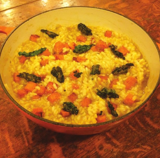 When the rice is cooked, add the reserved squash cubes and heat through. Stir in the cheese and pepper and check the seasoning. Serve immediately, garnished with chopped parsley or fried sage leaves.