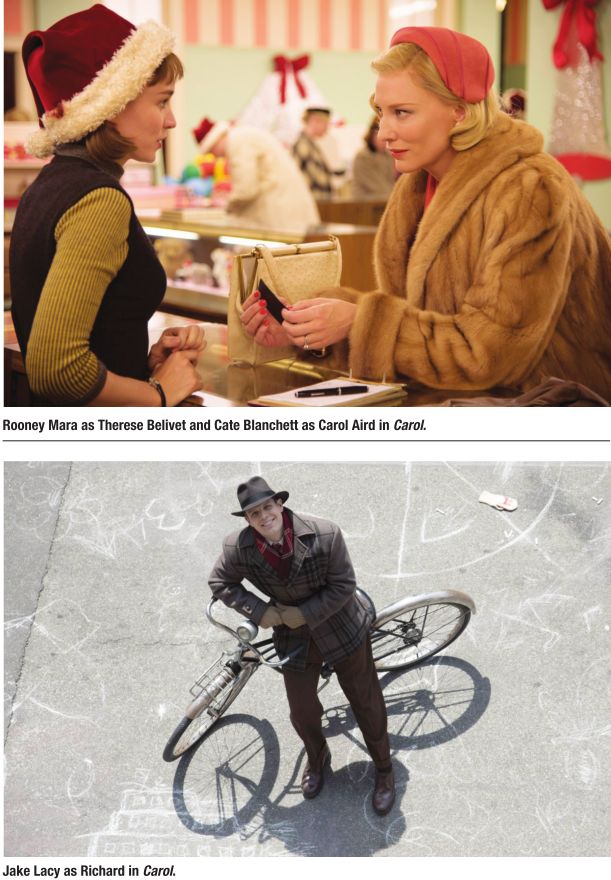 In adapting Patricia Highsmith’s novel The Price of Salt, director Todd Haynes takes the refreshing approach of looking at the era of repression that was the 1950s through a modern lens. Rather than give us a Douglas Sirk-like exercise, much as he did in Far From Heaven which recreated the tone of implication in regards to the characters’ true natures and desires, he’s much more obvious in portraying just what the title character and the object of her affection want. The result is not a film that revels in explicit examples of their sexual behavior but rather a tasteful, mature movie that presents its characters as complex, flawed and genuine people, as it eschews the notion of condescending to its audience as films from the ‘50s often would.