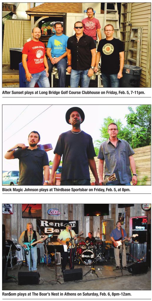 Copper Canyon Band Major Leagues, Taylorville, 8pm-12am. Off The Wall Mowie’s Cue, 9pm-12am.