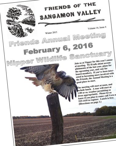 To become a member, sign up for the newsletter, volunteer your time or donate property, money, goods or tools to Friends of Sangamon Valley, please contact the organization at P.O. Box 13352 Springfield, IL 62791 or visit the FSV Facebook page or email [email protected]. or call Vern at 217-525-1410. Monthly board meetings are held the first Thursday of every month at 6:45 p.m. at the Adams Wildlife Sanctuary.