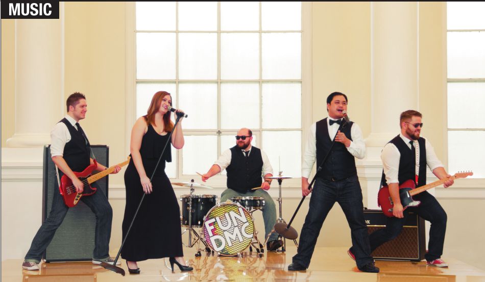 BAND SPOTLIGHT | Fun DMC Take the cover band concept of playing popular songs and combine it with a DJ-style song mashup to make an “oddly entertaining blend of musical alchemy”, and there you have the design behind Fun DMC. Combined artists include Journey and Metallica, Nelly and The Bee Gees, Run-D.M.C. and Avril Lavigne, Usher and Michael Jackson, LMFAO and AC/DC, and even Lynyrd Skynyrd and Tupac to give you a small sample of what’s going on here. In another fun method of entertaining, Robert Reynolds (guitars, vocals) and Aaron Stanley (bass, vocals), both formerly of Closing Time, Albert Capati (vocals) formerly of Novocaine, Springfield theater and Muni favorite Paige Martin (vocals), plus Talon Holmes (drums) developed the “extended thematic medley” technique, offering up a collection of related songs often reaching 12 minutes in length. That’s not all, as this group includes a high-energy live show in the mix, which contains but is not limited to leaping and jumping from tables, bars and drumkits. Whatever it takes, Fun DMC promises you will be entertained. See also