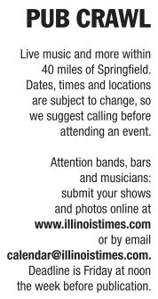 Find more details and gigs in our online calendar at www.illinoistimes.com.