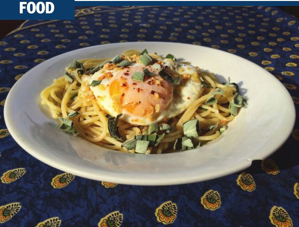 7. Garnish pasta and eggs with oregano or sage and serve immediately. Pass the additional Parmigiano-Reggiano at the table.