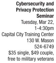 On Tuesday, March 22, Lincoln Land Community College’s Capital City Training Center hosts a computer security and privacy protection seminar designed to help novice-to-expert users of technology understand potential cybersecurity issues. Presenter Darrell Fortae, owner of Everlast Software LLC, will share advice and steps that can be taken to protect computers, mobile devices, information, identity and more. Some of the topics Darrell will discuss in detail include malware such as viruses, Trojan horses and worms; Internet browsing; network, password and storage encryption; mobile devices; identity theft; Facebook; backups; Wi-Fi and wireless security and much more. Preregistration is required. To register for the seminar, call 524-6749 or email [email protected]. To schedule a private Cybersecurity and Privacy Protection Seminar for your employees, call 785-0477.