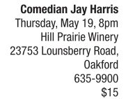 COMEDY | Comedy + wine = fun Treat yourself to a bit of fun this Thursday evening, complete with wine, snacks and laughs as Hill Prairie Winery hosts comedian Jay Harris for one very funny show. Jay’s accolades include being selected as a finalist in the 2008 “Zaniest Comedian in Chicago” competition. Jay has also been awarded last place at the Seattle Comedy Competition, and has received rejections from the Big & Little, Bridgetown and SLO comedy festivals. Jay is a self-described “human being extraordinaire” as well as a sarcastic performer who isn’t afraid to take shots at his biggest target: himself. When Jay isn’t putting himself down on stage, you can find him dabbling in another one of his passions – sampling delicious food in the towns he performs in – and blogging about it on his website at http://jayharriscomedy.com. Tickets are $15 and can be purchased in advance via phone or at the winery. For more information about Jay’s show and Hill Prairie Winery, visit http://hillprairiewinery.com.