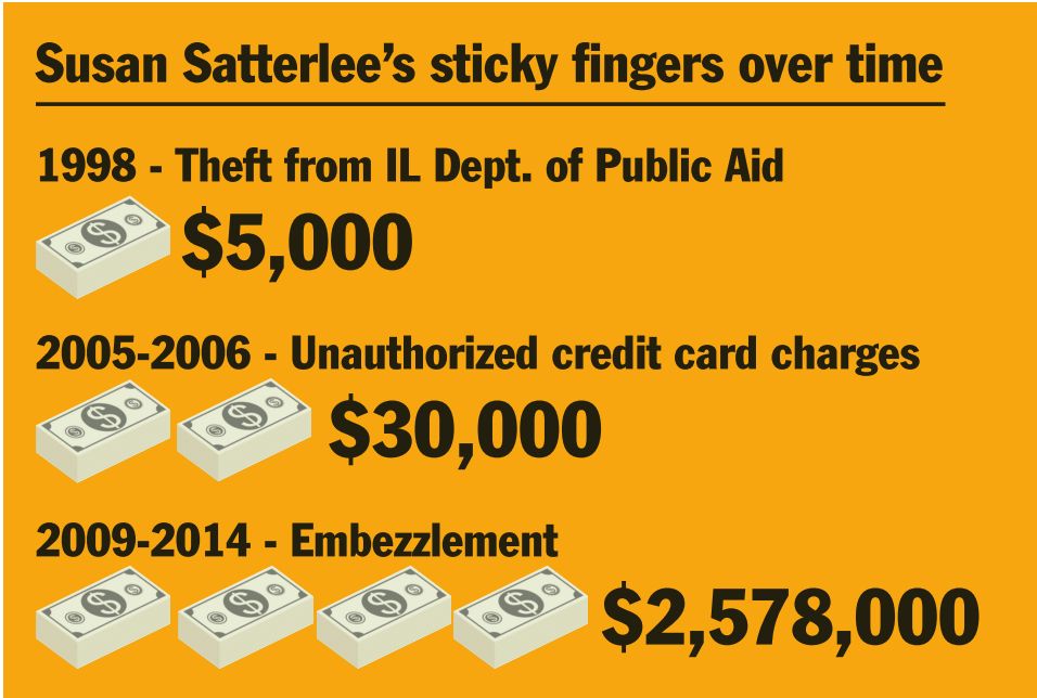November 2015, Satterlee pleaded guilty to wire fraud, embezzlement and