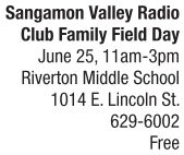 BULLETIN BOARD | A celebration of amateur radio Join the Sangamon Valley Radio Club, Springfield Community MakerSpace, former WAND-TV chief meteorologist Lee Davis and other technological experts for a Field Day and Family Day celebration to cap off 2016’s Amateur Radio Week on Saturday, June 24, from 11 a.m. through 3 p.m. at Riverton Middle School. The free event includes displays, mini-courses and workshops along with a 24-hour ham radio communications exercise and competition taking place throughout the United States and Canada. Weather forecasting classes led by Lee Davis begin at 11 a.m., where children will learn about weather patterns and experience life as a television weatherperson using green screen technology. Sangamon Valley Radio Club members that are not participating in the 24-hour competition will run workshops on Morse Code and other communications-related technology. Attendees can also peruse displays by the National Weather Service, the American Red Cross and Ameren, and, with the aid of a licensed ham radio operator, go live on the air in the GOTA communications van. For more information about the Sangamon Valley Radio Club’s Family Field Day at Riverton Middle School, visit http://svrc.org. See also