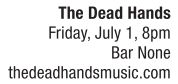BAND SPOTLIGHT | The Dead Hands These Chicago guys got a good start in the business by winning WGN’s Breakthrough Band competition in 2014 with their first single, “Grind Your Teeth.” After spending 2015 promoting and playing the latest release, Shiny Things, the guys headed back into the studio last February to start on another collection of fiery and fun music. Calling their style of music “alternative rock rhythm and blues,” the quartet of Willard J. Wilcox (vocals, guitar), Brett Lee (guitar), Jared Newcomb (vocals, drums) and Jason (Bassy) Gerren (bass) are making a run at the good times. After the Bar None gig they roll on into the Lake of the Ozarks area for a couple of shows, then rock on back to Chicago to prepare for a House of Blues headliner concert on July 22. Do yourself a favor and take a listen on iTunes to the refreshing throwback sounds of The Dead Hands, then bring yourself and a party to Bar None on Friday to check ‘em out live. You only live once.