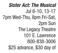 Sister Act: The Musical is the Broadway iteration on the story of Deloris Van Cartier, who, after witnessing a crime, is disguised by the police as a nun and hidden in a convent for her protection. The Legacy is one of the first regional theaters to bring the show to stage, and director Greg Donathan, choreographer Taryn Grant, vocal director Elizabeth Donathan and musical director Matthew Mason are having a blast doing so. The performance features an electrifying score rooted in disco-era Motown by Tony, Grammy and Academy Award winner Alan Menken, accompanied by a full orchestra. Adult admission is $25 in advance and is $30 the day of the show. Admission for seniors and children is $22 for Wednesday, Thursday and Sunday performances when purchased in advance. For more information about Sister Act: The Musical and other performances at The Legacy Theatre, visit http://atthelegacy.com.