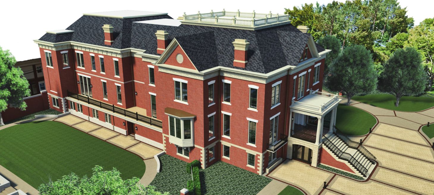 Some exterior features of the original mansion were removed or covered up by past renovations, like the original cupola that crowned the mansion. The cupola won’t appear in the new renovation, but Hamp says smaller early details will be reinstated, like the original box gutter design built into the decorative cornices instead of the current modern gutters.