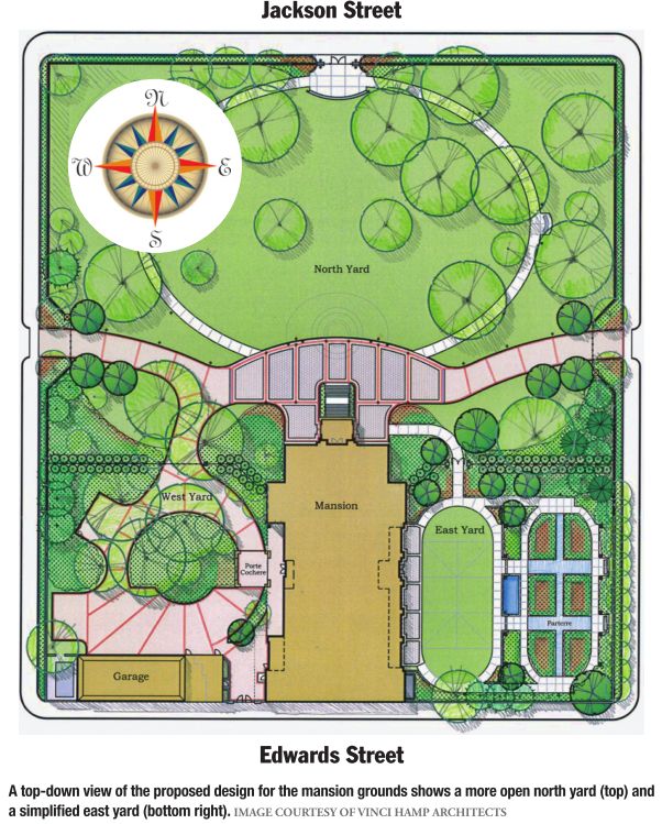 “We wanted the north yard to be very public, and to be able to see the mansion as you approach it,” he said. “The mansion is really a historic
