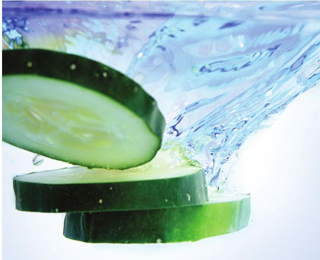 -Increase your consumption of juicy fresh fruits and vegetables. Eating foods like cucumbers, melon, tomatoes, grapes and citrus are tasty ways to up your water intake. Brothy soups and fruit and veggierich smoothies also help keep you hydrated.