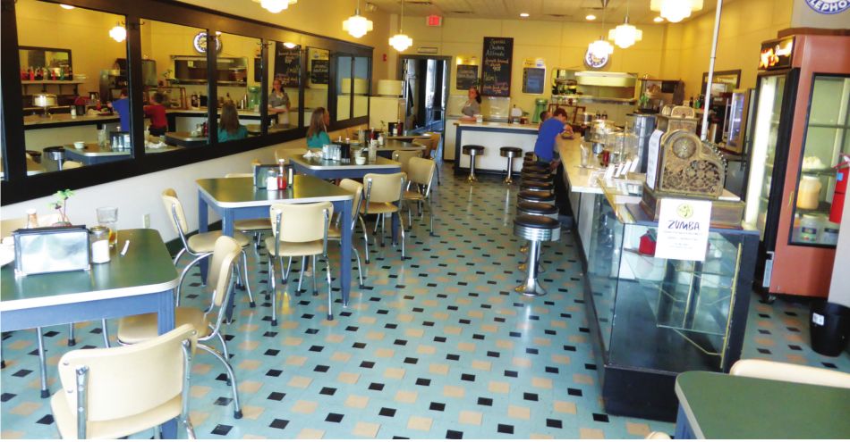 other fountain treats. Waitresses wear period uniforms, and the decor