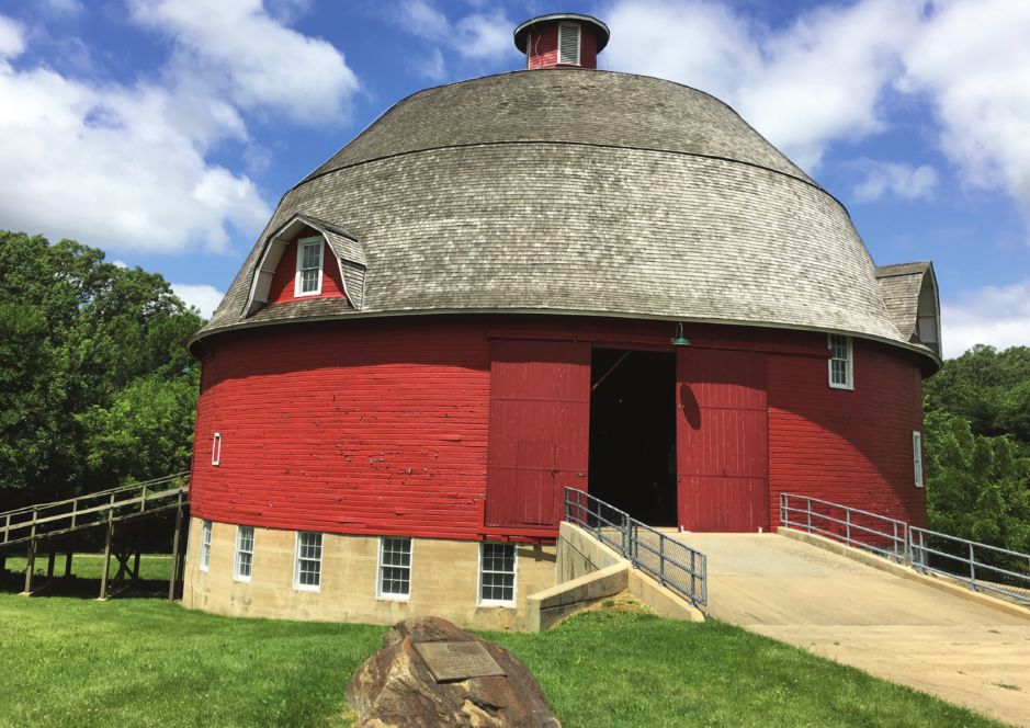 One of the loveliest places I’ve been in some time is Ryan’s Round Barn. Located six miles from Kewanee on Route 78, the barn is about two hours north of Springfield, near the entrance to Johnson’s Sauk Trail State Recreation Area. It’s a surprise in the midst of an Illinois state park. The park offers a variety of trails and a campground. The park is on a glacial moraine and the barn is a backdrop for the rolling hills of Henry County. The park sits beside a trail that led Native Americans from Lake Michigan to the confluence of the Mississippi and Rock rivers.